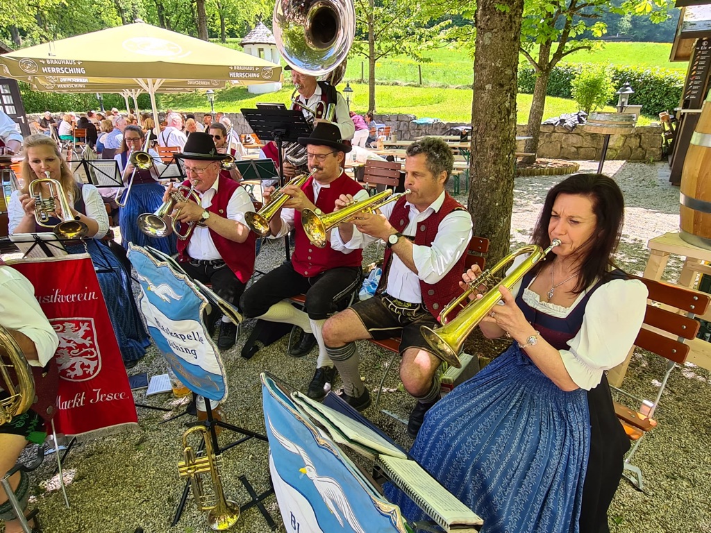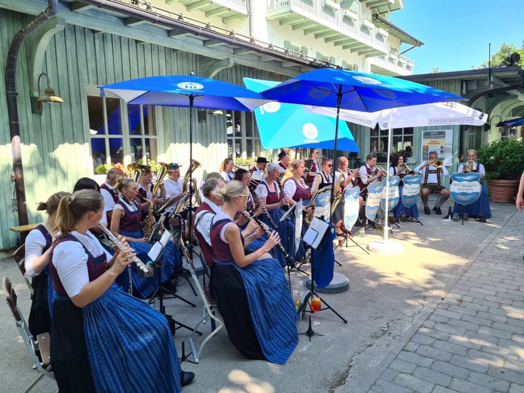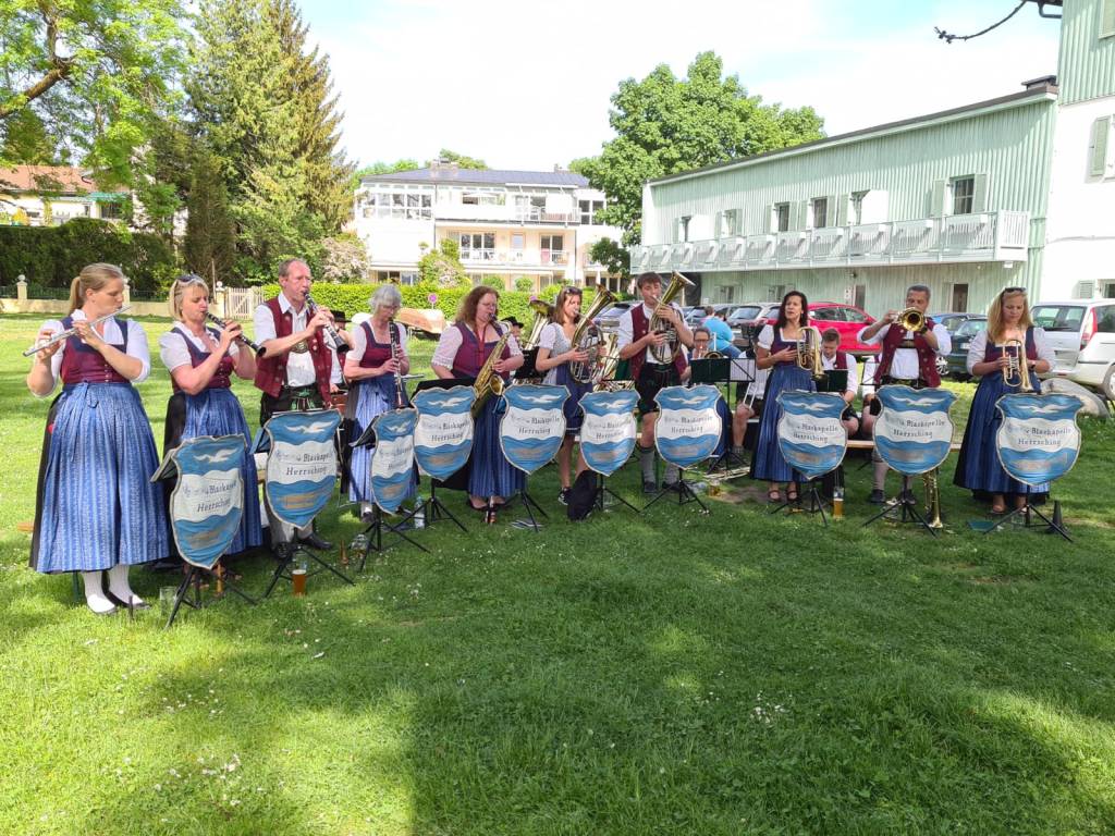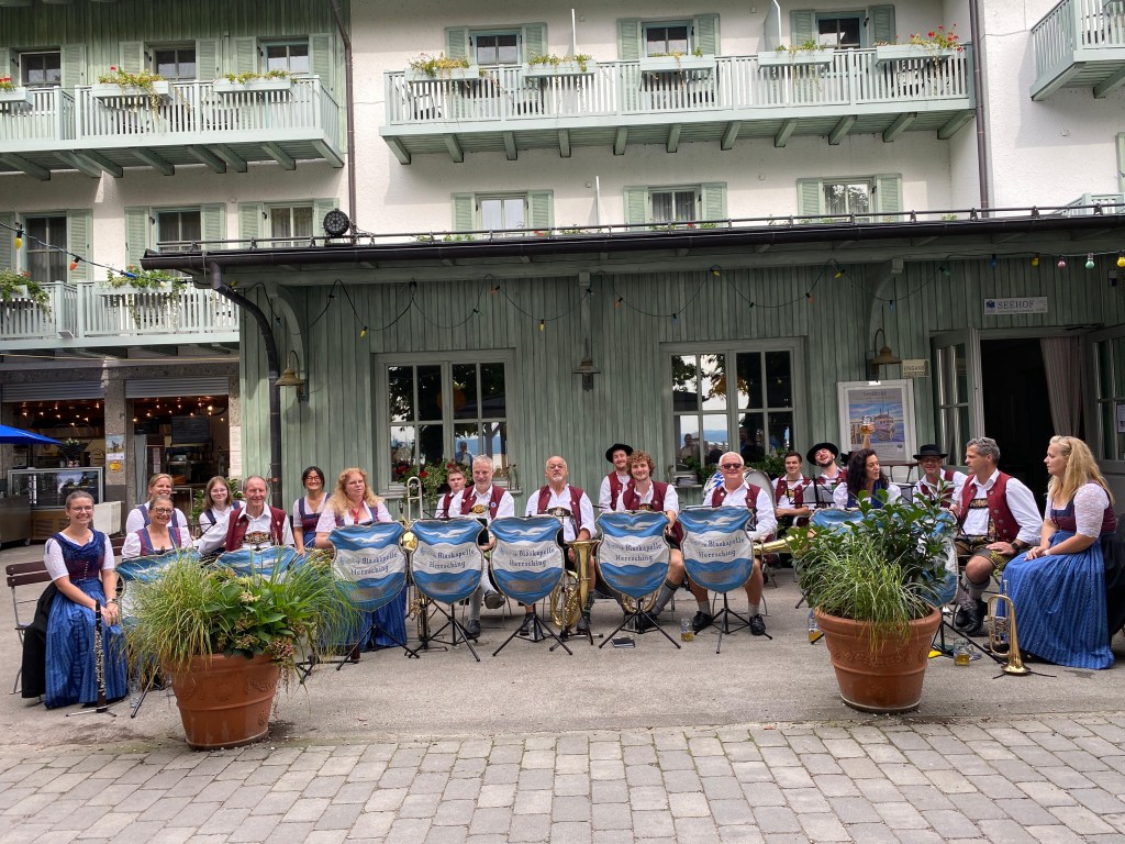 Aufgrund der gesetzlichen Vorgaben (Abstandsregelung / Hygienekonzepte) wurden die Proben wenn möglich im Freien abgehalten. Hier stellten einige Musikanten ihre privaten Gärten zur Verfügung. Einige Zaungäste (in der Regel Nachbarn) konnten sich so über ein musikalisches Ständchen freuen. Gezielte Probearbeit konnte in der Regel nicht betrieben werden, aber zumindest blieben die schon bekannten Musikstücke im Gedächtnis. Spannend war auch die Entwicklung des Wetters, da öfter Gewitterzellen knapp an Herrsching vorbeigezogen sind – so manche Probe wurde daher kurzfristig vorzeitig beendet. Dennoch haben diese Proben viel Spaß gemacht und dazu geführt, dass man sich nicht aus den Augen verloren hat.