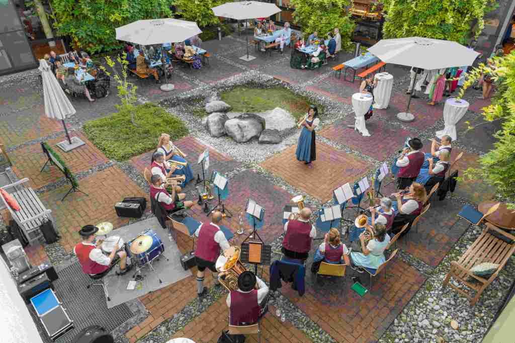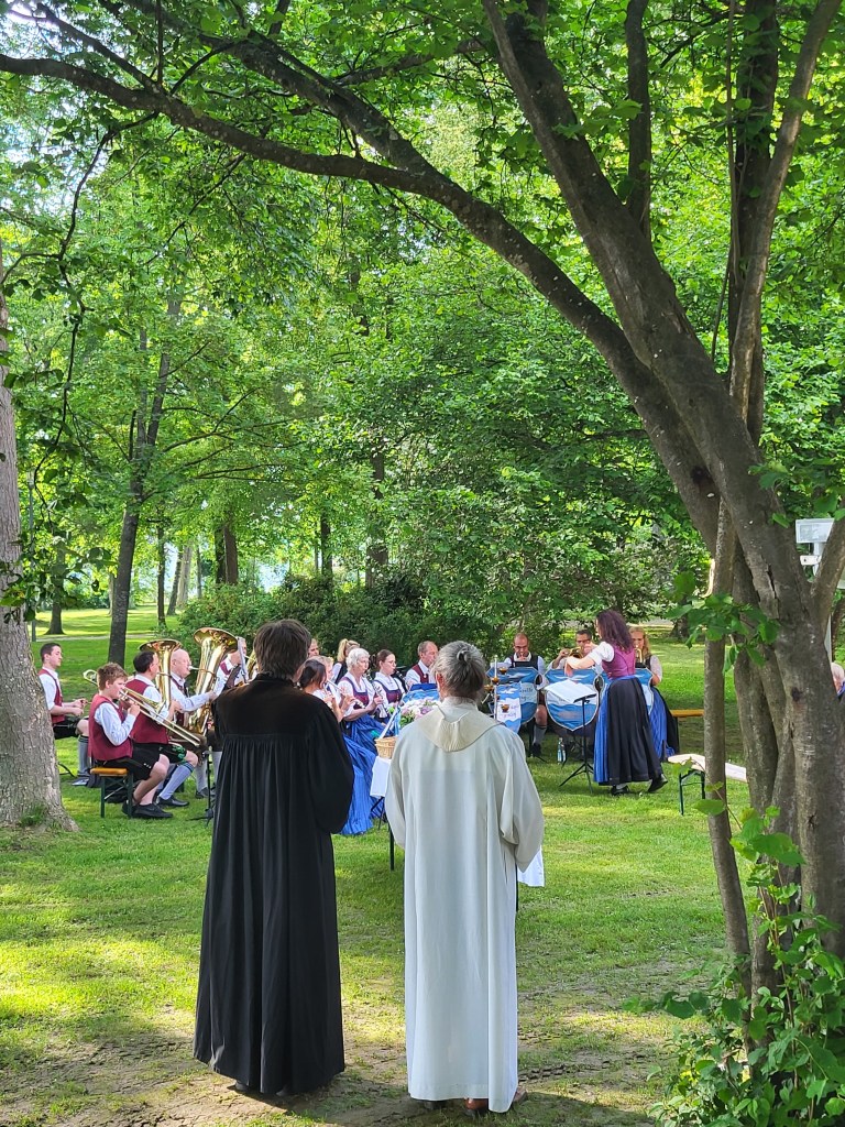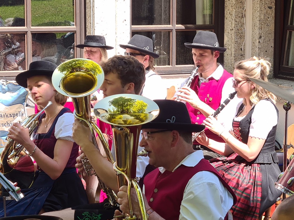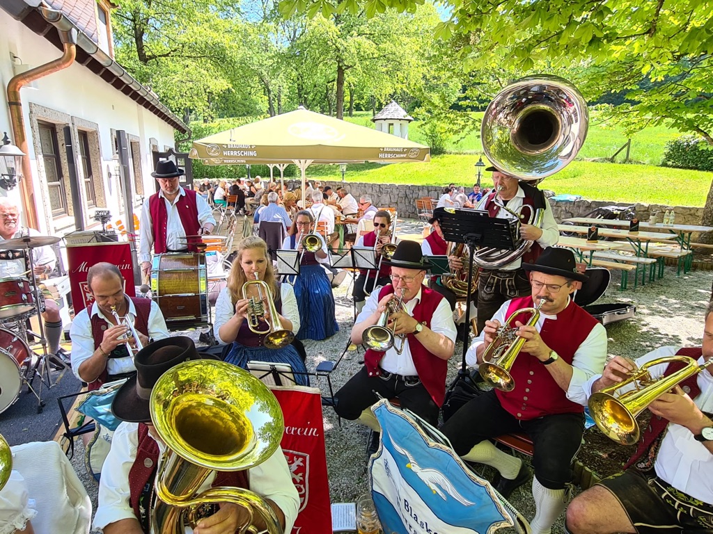 Aufgrund der gesetzlichen Vorgaben (Abstandsregelung / Hygienekonzepte) wurden die Proben wenn möglich im Freien abgehalten. Hier stellten einige Musikanten ihre privaten Gärten zur Verfügung. Einige Zaungäste (in der Regel Nachbarn) konnten sich so über ein musikalisches Ständchen freuen. Gezielte Probearbeit konnte in der Regel nicht betrieben werden, aber zumindest blieben die schon bekannten Musikstücke im Gedächtnis. Spannend war auch die Entwicklung des Wetters, da öfter Gewitterzellen knapp an Herrsching vorbeigezogen sind – so manche Probe wurde daher kurzfristig vorzeitig beendet. Dennoch haben diese Proben viel Spaß gemacht und dazu geführt, dass man sich nicht aus den Augen verloren hat.